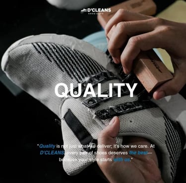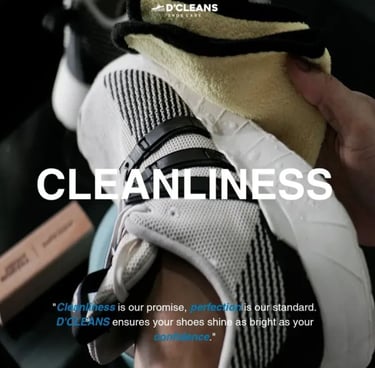 Kami menghadirkan D’Cleans sebagai layanan cuci sepatu profesional yang menjadi pelopor sistem antar-jemput gratis pertama di Jatinangor sejak tahun 2017. Dengan mengedepankan Quality, Services, Cleanliness, and Value, kami berkomitmen memberikan kepuasan dan hasil terbaik bagi setiap pelanggan. Pemesanan layanan kami dapat dilakukan secara offline maupun online, dengan mengikuti perkembangan zaman di era digitalisasi ini semua menjadi serba praktis. Sehingga pemesanan secara online bisa lebih cepat melalui WhatsApp. Di D'Cleans Shoe Care, anda dapat memilih berbagai jenis treatment sesuai kebutuhan sepatu, mulai dari pembersihan ringan hingga perawatan mendalam, yang ditangani oleh tenaga profesional dan berpengalaman. Tidak hanya fokus pada layanan, kami juga menyediakan beragam produk perawatan sepatu berkualitas tinggi untuk memastikan sepatu Anda tetap bersih, awet, dan selalu terlihat seperti baru setiap hari.
